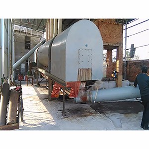 熱解爐內(nèi)的物料在被加熱的爐內(nèi)(通常情況下控制在800℃上下,溫度和內(nèi)部揚料輸送裝置經(jīng)過針對性優(yōu)化調(diào)整可實現(xiàn)物料炭化而不燃燒成灰)實現(xiàn)炭化分解后的從末端排出,經(jīng)過冷卻、收集系統(tǒng),將炭化產(chǎn)品進行收集。